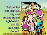 Trong Tin Mừng Thánh Luca, Chúa Giêsu kể dụ ngôn về một người kia muốn tổ chức một tiệc lớn. Nhưng khách dự tiệc lại đưa ra nhiều lý do từ chối lời mời của ông. Vì thế, ông sai đầy tớ đi mời những người nghèo khó, tàn tật cho đầy nhà và vui hưởng lòng hiếu khách của ông.