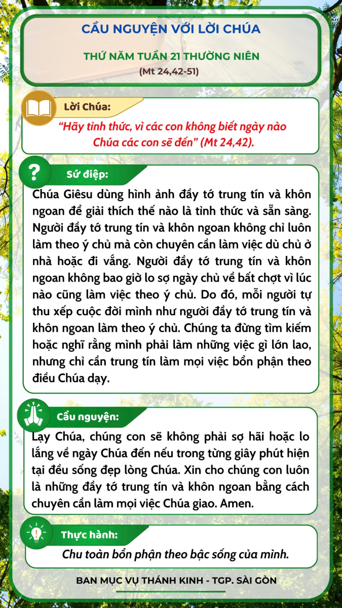 Cầu nguyện với Lời Chúa - Thứ Năm tuần 21 thường niên