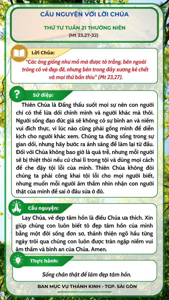 Cầu nguyện với Lời Chúa - Thứ Tư tuần 21 thường niên