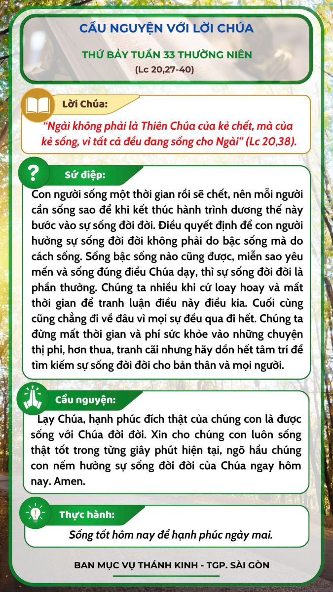 Cầu nguyện với Lời Chúa - Thứ Bảy tuần 33 thường niên