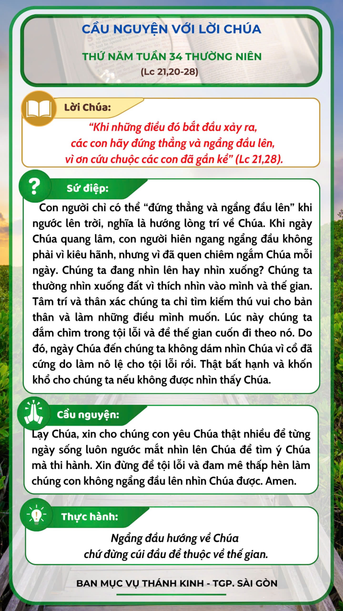 Cầu nguyện với Lời Chúa - Thứ Năm tuần 34 thường niên