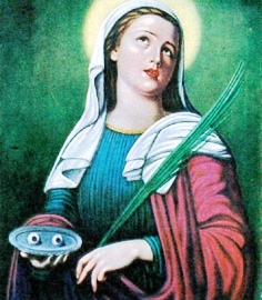Tôi còn nhớ như in cái ngày tôi rước lễ lần đầu, mẹ tôi tặng cho tôi một quyển sách kinh nhỏ, lúc ấy tôi chỉ là một đứa bé vui mừng vì được tặng quà, tôi lật mở ra xem thì thấy hình thánh nữ Lucia, đó là thánh bổn mạng của tôi. Trong lúc tôi ngắm nghía vị nữ thánh tuyệt đẹp ấy, mẹ tôi thủ thỉ kể cho tôi về gương đạo đức của chị, tôi hiểu bà muốn tôisẽ trở thành một thiếu nữ đẹp cả về tâm hồn lẫn thể xác như chị. Tôi đã thắc mắc tại sao trong tấm hình ấy có tới hai đôi mắt, đặc biệt là đôi mắt đặt trên chiếc đĩa trong tay Lucia có ý nghĩa gì? Sau này lớn lên, tôi hiểu rằng đó là một biểu trưng cho đôi mắt đức tin của Lucia, ngay cả cái tên của chị Lucia cũng mang một ý nghĩa sâu sắc về bản thân chị: “Ánh Sáng”! Vì thế mà có nhiều người mắc bệnh về mắt thường cầu xin vị thánh này cầu bầu cho mình khỏi bệnh. Mặc dù vậy tôi cũng chưa hề bao giờ có ý định cầu xin điều đó với chị. Vì gương tử đạo của chị là chấp nhận đau khổ và chết vì đạo Chúa. . .