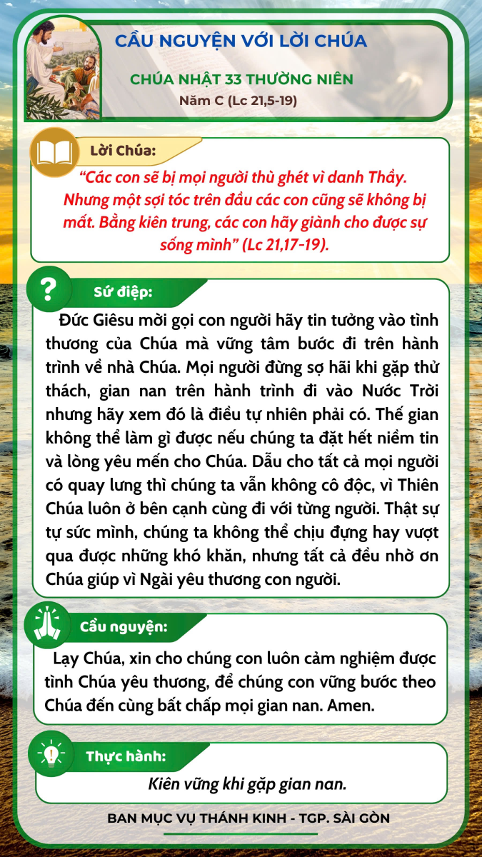 Cầu nguyện với Lời Chúa - Chúa Nhật tuần 33 thường niên