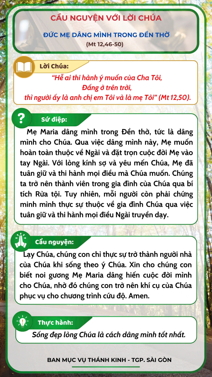 Cầu nguyện với Lời Chúa - Đức Mẹ dâng mình trong đền thờ