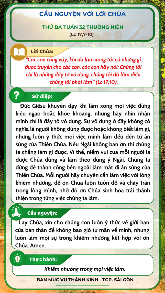 Cầu nguyện với Lời Chúa - Thứ Ba tuần 32 thường niên