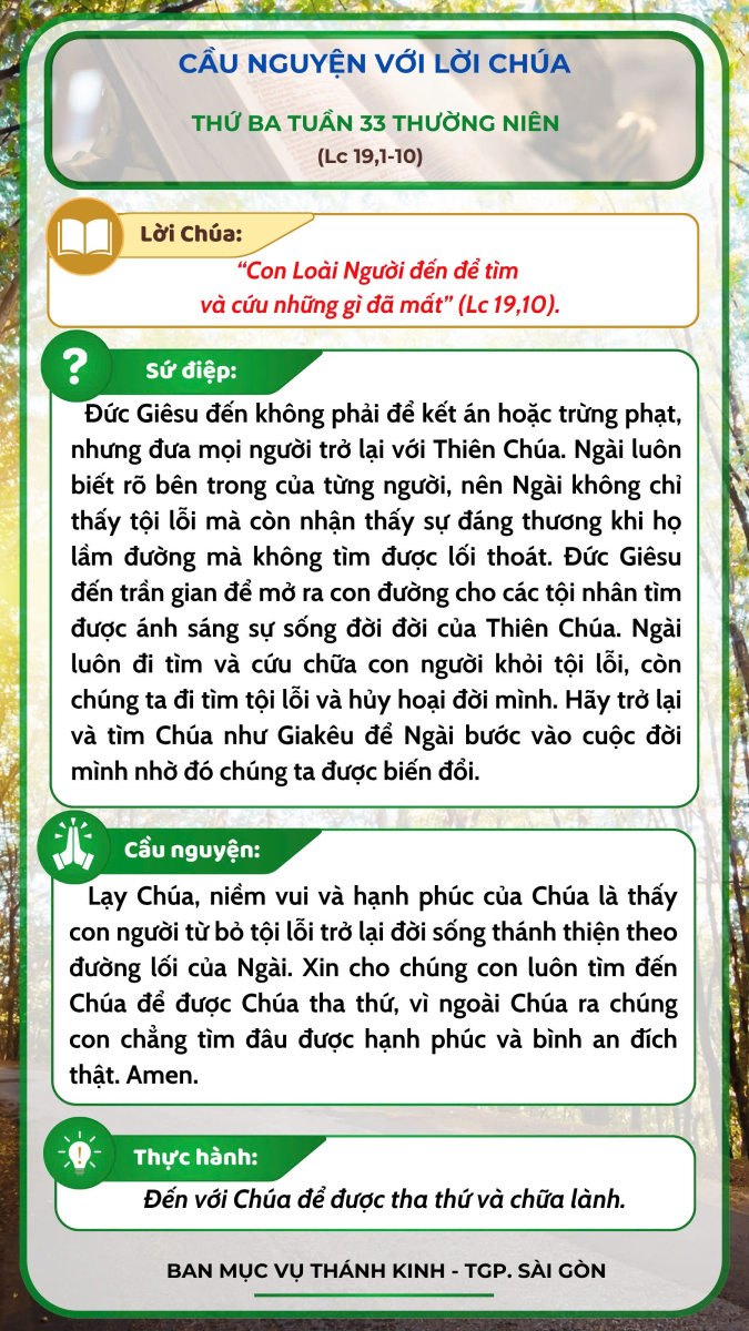 Cầu nguyện với Lời Chúa - Thứ Ba tuần 33 thường niên
