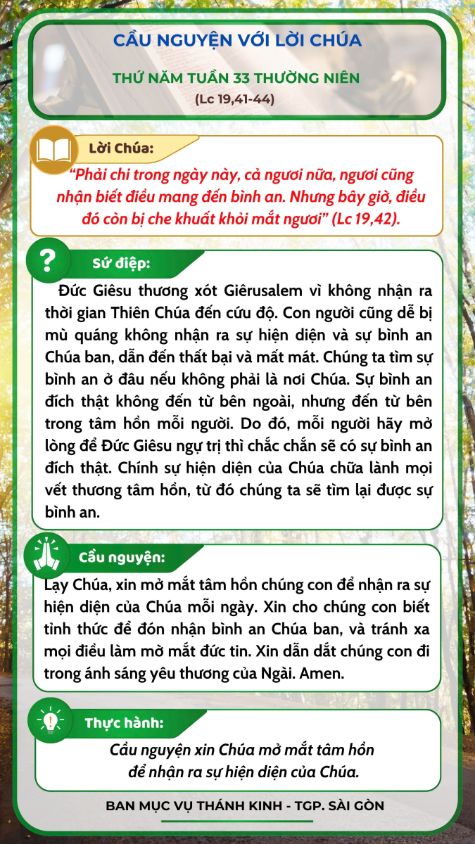 Cầu nguyện với Lời Chúa - Thứ Năm tuần 33 thường niên