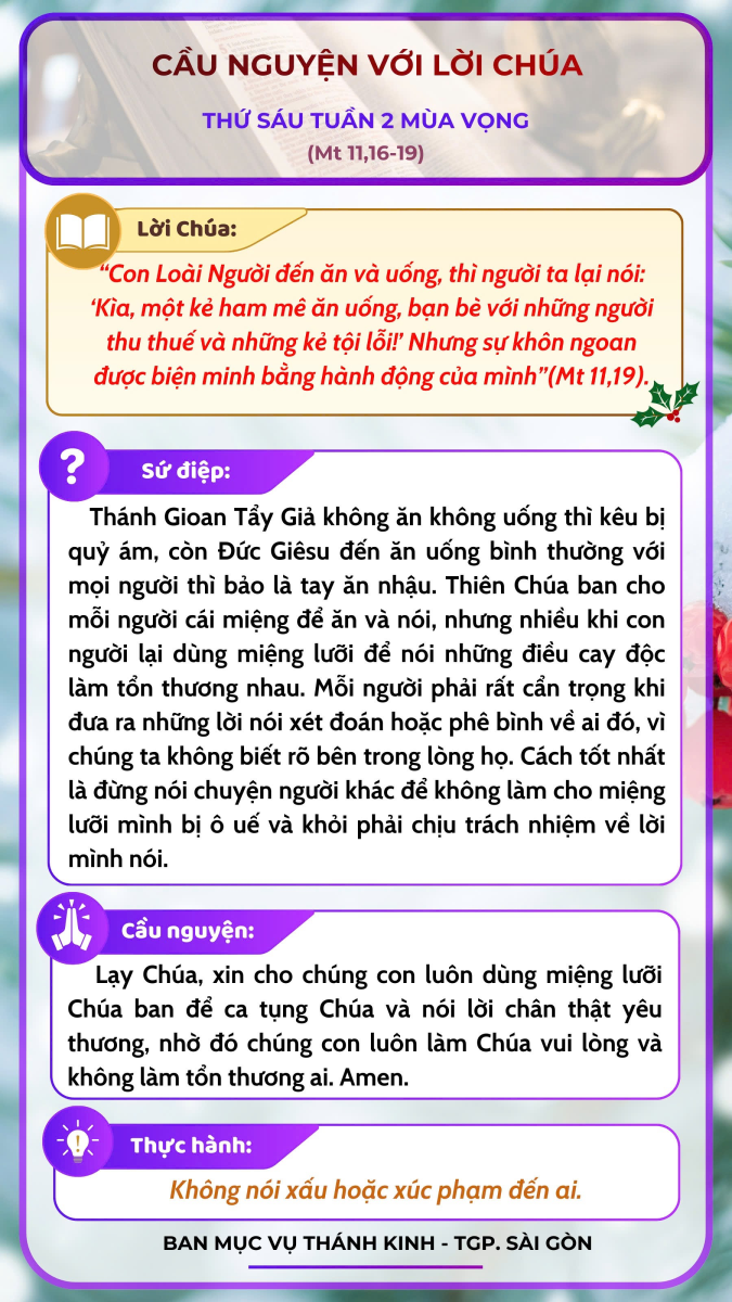 Cầu nguyện với Lời Chúa - Thứ Sáu tuần 2 Mùa Vọng