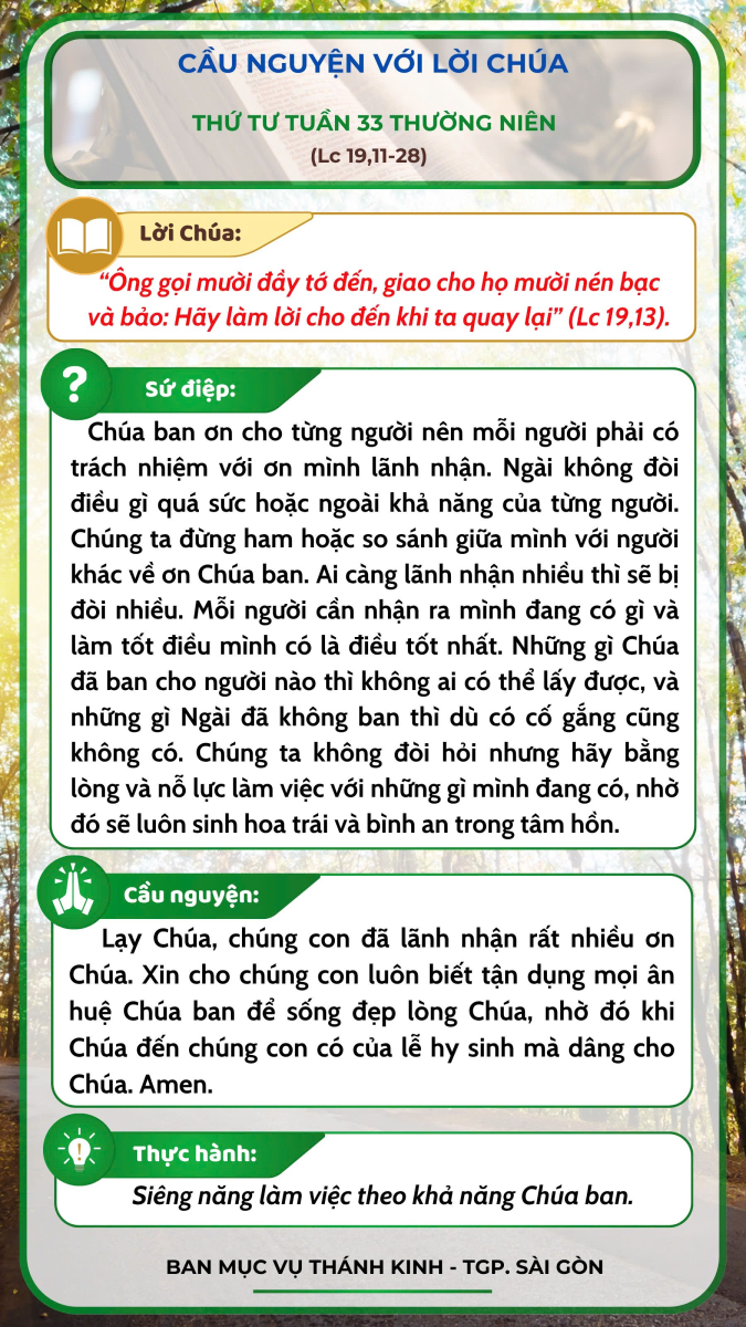 Cầu nguyện với Lời Chúa - Thứ Tư tuần 33 thường niên