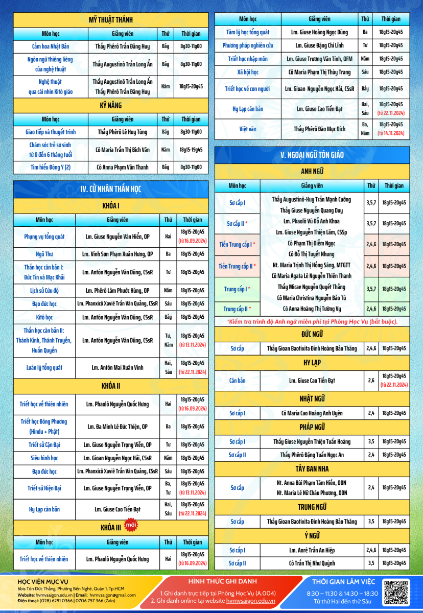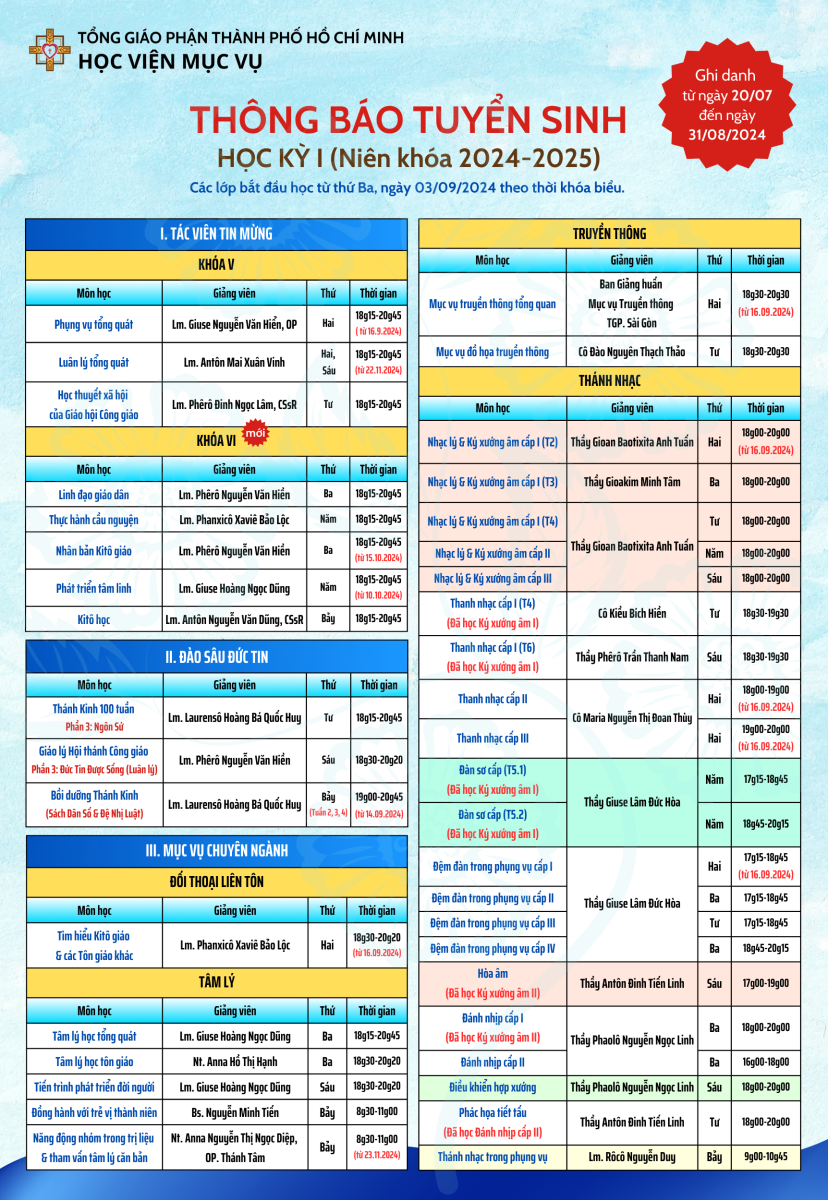 Học viện Mục vụ - Thông báo tuyển sinh học kỳ I (2024-2025)