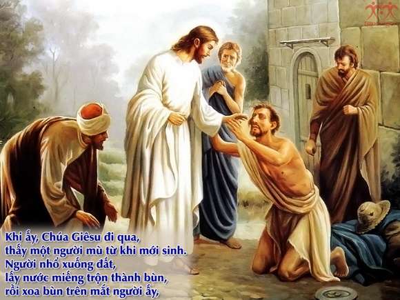 Bài Tin Mừng của Chúa Nhật IV Mùa Chay hôm nay, Thánh Gioan cũng kể cho chúng ta nghe câu chuyện về anh mù. Anh này bị mù từ nhỏ, bị mù bẩm sinh. Vì mù nên anh không biết khuôn mặt của mình, không biết cha mẹ mình là ai và những người thân của mình như thế nào. Anh cũng không thấy được vẻ đẹp của vũ trụ và thiên nhiên. Cuộc sống của anh toàn là một màu đen. Ngày cũng như đêm. Đêm cũng như ngày. Ai cũng như nhau. Anh phải sống trong một tâm trạng buồn thảm và thất vọng hoàn toàn. Nhiều người cho rằng vì có tội nên anh mới bị trừng phạt như thế. Nhưng thật may, Chúa Giêsu đã thấy anh và chữa anh sáng mắt. Chúa không chỉ chữa cho anh được sáng đôi mắt thể xác, giúp anh thấy mình, thấy tha nhân, thấy cảnh vật xung quanh; nhưng quan trọng hơn, Ngài còn chữa lành đôi mắt đức tin của anh nữa. Chúa đã hỏi anh: “Anh có tin vào Con Người không? Anh đáp: “Thưa Ngài, Đấng ấy là ai để tôi tin?” Chúa Giêsu trả lời: “Anh đã thấy Người. Chính Người đang nói với anh đây”. Anh nói: “Thưa Ngài, tôi tin”. Rồi anh sấp mình xuống trước mặt Người” (Ga 9,35-38). Chúa cho anh được thấy Ngài, được gặp Ngài, được tin Ngài và thờ phượng Ngài.