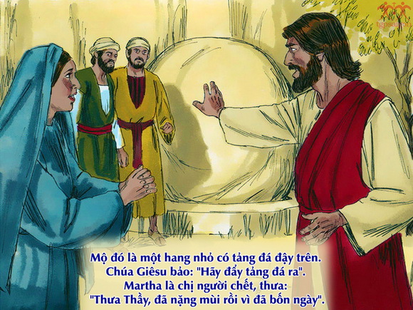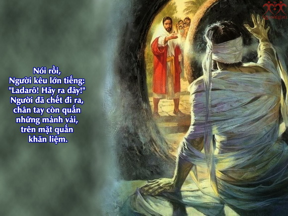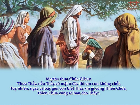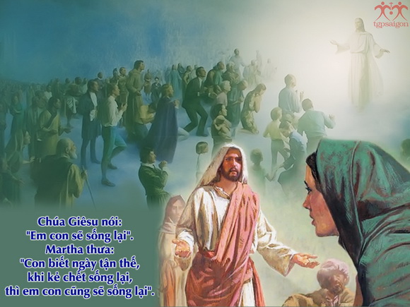 Bài Phúc Âm hôm nay ghi lại biến cố Chúa Giêsu đến với gia đình chị em Martha, Maria và Lazarô để mạc khải cho họ sự thật căn bản về sự sống đời đời: 'Ta là sự sống lại và là sự sống, ai tin Ta thì dù có chết cũng sẽ được sống. Ai sống mà tin Ta sẽ không chết bao giờ'. Gioan đã diễn tả tình cảm của Chúa Giêsu đối với người bạn Lazarô đã chết và thương cảm cho những người thân yêu trong cơn đau khổ muộn phiền: “Thấy Maria khóc, và những người Do Thái đi với cô cũng khóc, Đức Giêsu thổn thức trong lòng và xao xuyến”. Chúa Giêsu cho con người và cho mọi người hiểu rằng phép lạ cho Lazarô sống lại chỉ là để chuẩn bị cho một phép lạ vô cùng lớn lao, vô cùng trọng đại: chính Ngài sẽ chết và sẽ sống lại khải hoàn. Niềm tin cho chúng ta hay Chúa Giêsu chết để đưa chúng ta vào cõi sống và đưa chúng ta từ thế giới tạm bợ này tới quê hương vĩnh cửu trên trời.