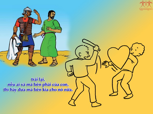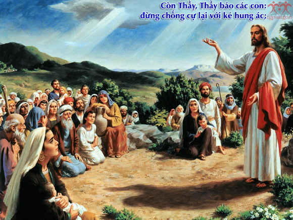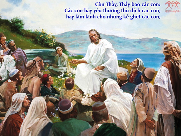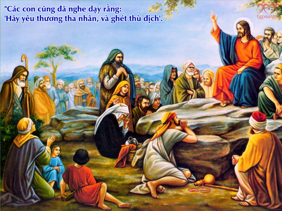 Tin Mừng hôm nay, Chúa Giêsu dạy chúng ta không sống theo “luật rừng”, không chỉ dừng lại ở mức độ công bằng. Mà hãy sống theo giới luật Chúa truyền, đó là luật “yêu thương”, một tình yêu bao là rộng lớn, một tình yêu vượt trên sự công bằng, vượt ra ngoài sự giới hạn tình gia đình, tình bằng hữu, tình đồng hương, vượt ra ngoài chủng tộc hay tôn giáo, “Anh em đã nghe Luật dạy rằng: Hãy yêu đồng loại và hãy ghét kẻ thù. Còn Thầy, Thầy bảo anh em: hãy yêu kẻ thù và cầu nguyện cho những kẻ ngược đãi anh em” (Mt 5, 43-44). Yêu kẻ thù, là yêu thương cả những người làm hại, khinh bỉ, nói xấu, vu khống mình, không tìm cách báo thù, không lấy ác báo ác, mà ân báo oán, luôn cầu nguyện và mong muốn cho họ gặp những điều may lành.