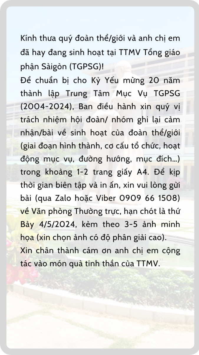 Trung tâm Mục vụ Tổng Giáo phận Sài Gòn - Kỷ yếu mừng 20 năm thành lập